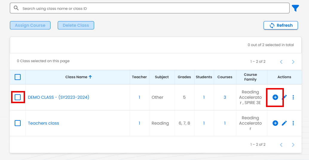 As a teacher or admin, you can assign courses to classes. Assigning a course to a class makes the content available for the class. The system also recognizes the class as related to the course family.