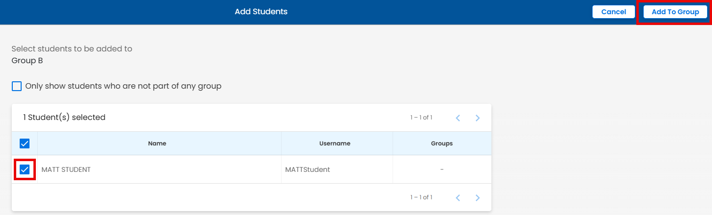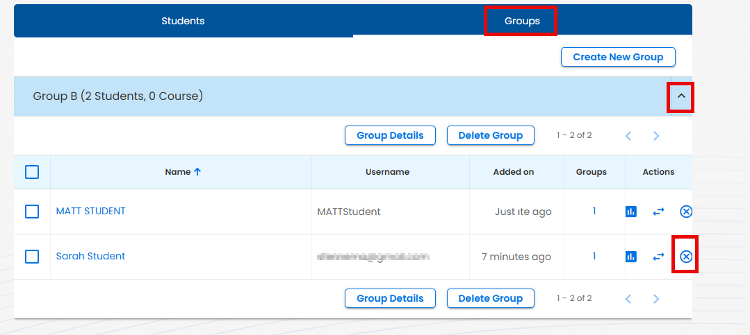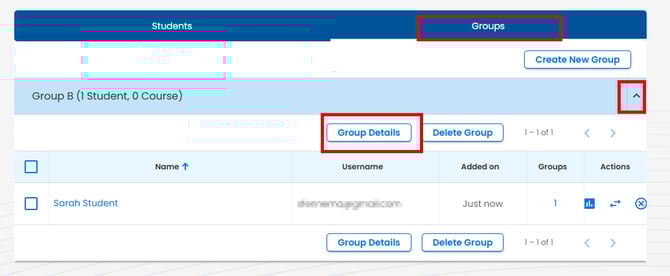 On the Class Listing page, select the class the group is in. Scroll to the bottom of the Class page