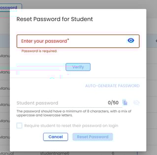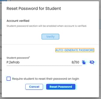 If needed, click the checkbox Require student to reset their password on login