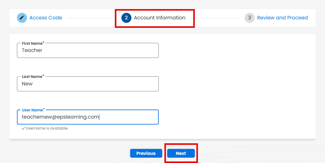 Enter your First Name, Last Name and User Name and select Next
