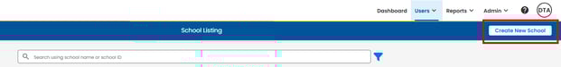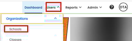 On the Navigation Bar, select USERS > ORGANIZATIONS > SCHOOLS