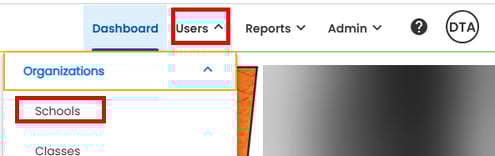 On the Navigation Bar, USERS > ORGANIZATIONS > SCHOOLS