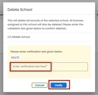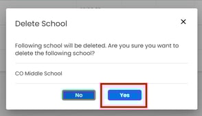 A pop-up will confirm that the school has been deleted successfully. Select OK to close.