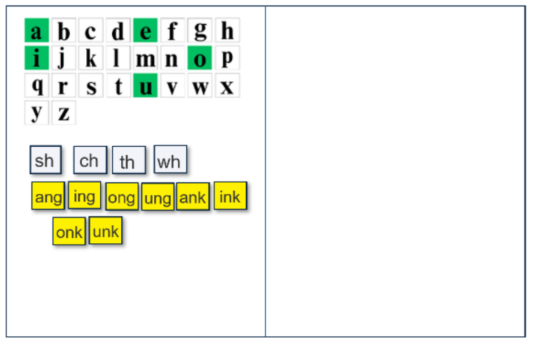 - End of Level: The level ends with the phonogram tiles that have been mastered throughout Levels 1-3.