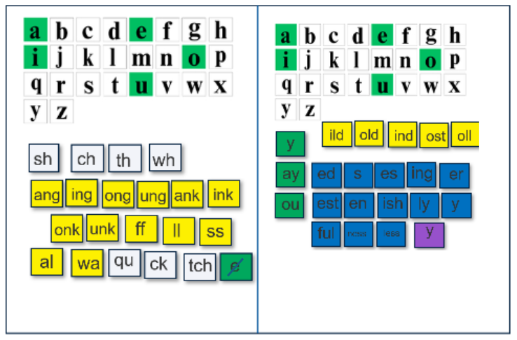 When the student gets to Level 3, the alphabet tiles must be doubled to allow students to build multisyllabic words